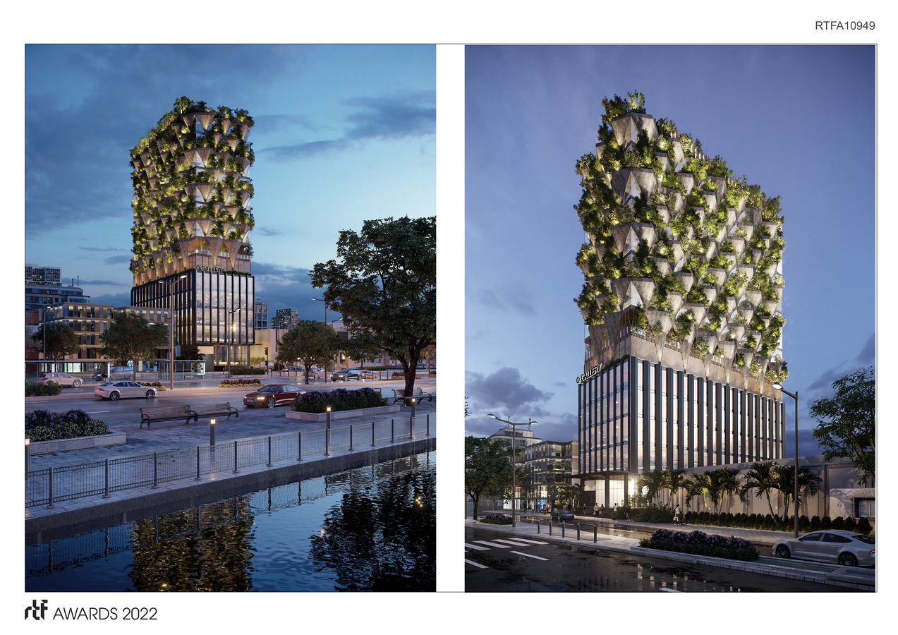 The investor’s request to build a different identity but still show the rationality from function to form has led to the idea of ”big potted plants in the heart of the city”, office blocks are pots, apartment blocks. is tree. The contrast in the design lines of the base block and the upper part makes the work even more outstanding.
