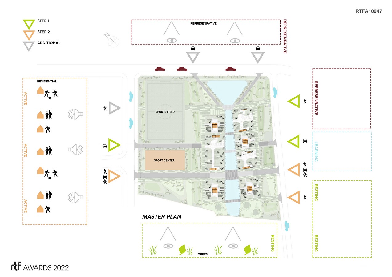 The solution for the facade is arranged based on the steps rule instead of using a flat surface. It is not created only a diagonal effect but also a shadow for the elements below. Façade is arranged to form a module that is built in the form of conventional reinforced concrete and it is suitable for the local conditions of construction. Additional, wet rice on the elevation is not only heat- isolation layer but also an identity for the exterior and interior. The purpose of creating a “green layer” is to protect the feeling of the user while the context is full of the slum. The campus has a lot of greenery surface and local trees, botanical and we also keep entire trees on the plot instead of getting rid of them which improve the natural ventilation, microclimate quality and reduce the concretization for the environment. Additional, a large surface contribute to the glamorous and familiarity with the identity of the Mekong Delta.