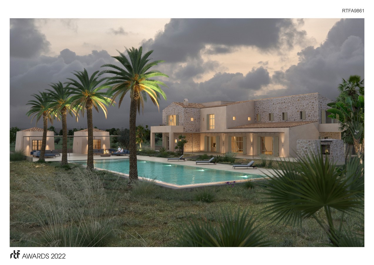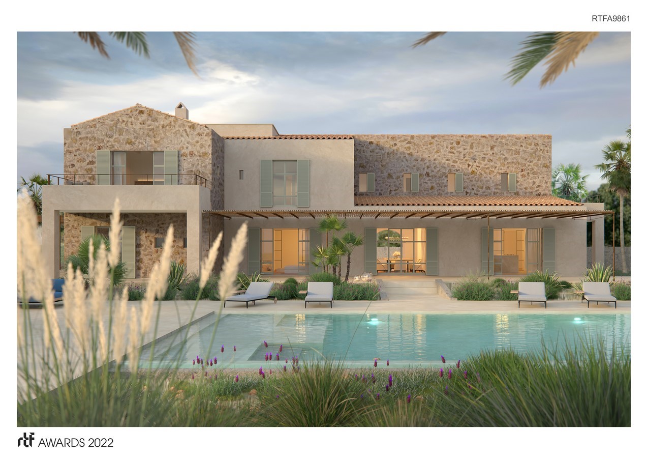 With local and noble materials in its exterior an interior such as marรฉs (sandy stone), natural stone, steel or wood, the building manages to adapt to the environment through traditional Mallorcan architecture with nods to its past such as the recovery tile roof, the ceramic chimneys, wooden blinds, etc. but adapting also to the present and specially to the future through technology applied to sustainability with all the amenities of a modern and smart house.