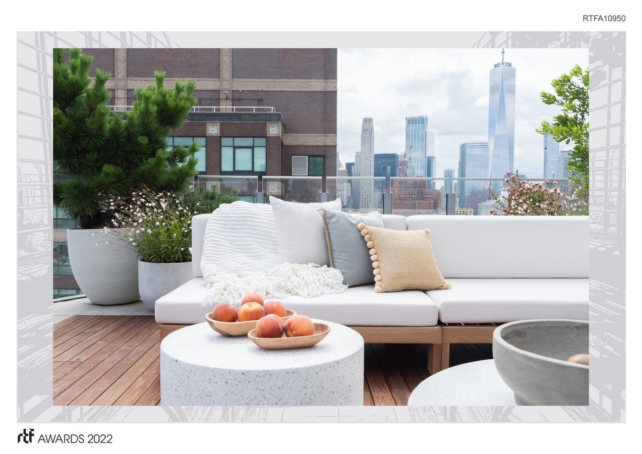 The penthouse, perched on the 28th floor and only a few short blocks from the Hudson River, allowed for massive wind gusts on a typical day. When a storm comes through, you are faced with some of the strongest winds you can be exposed to in Manhattan. Along with RKLA, our team’s landscape architect, our focus was to ensure all design elements like plants, planters and furniture would stand up to the elements, especially the wind. While developing a relationship with the client, we discovered his love for art. While discussing key design features like a custom primary bed, custom art speakers, and custom bookcases with our client, we articulated the design of each as art pieces specific to his space, making it easier to understand the importance of incorporating them.