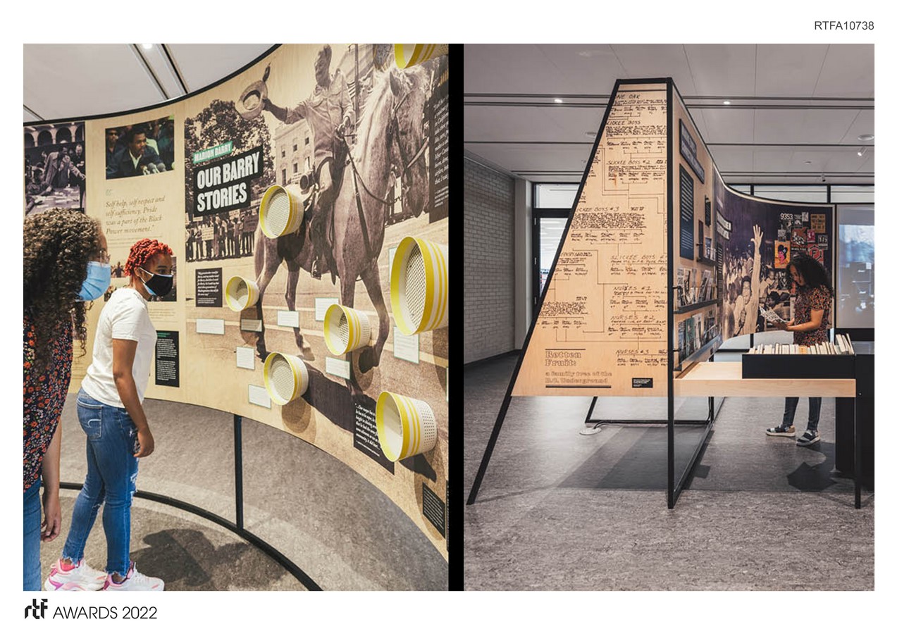 The design includes embedded media and analog interactives that welcome the public’s participation, including interactions with Go Go and Punk music videos, two local D.C. movements.