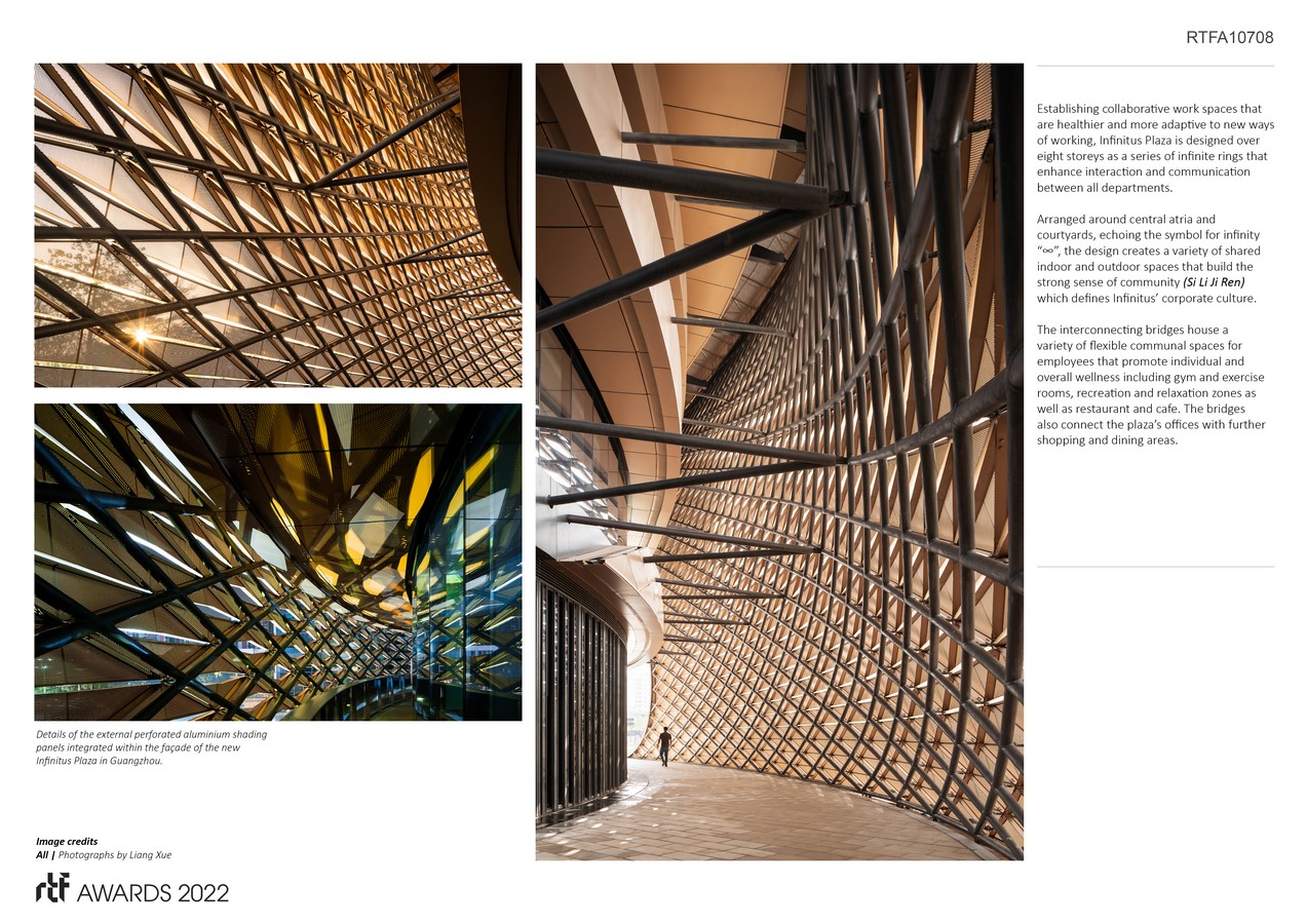 Establishing collaborative work spaces that are healthier and more adaptive to new ways of working, Infinitus Plaza is designed over eight storeys as a series of infinite rings that enhance interaction and communication between all departments.