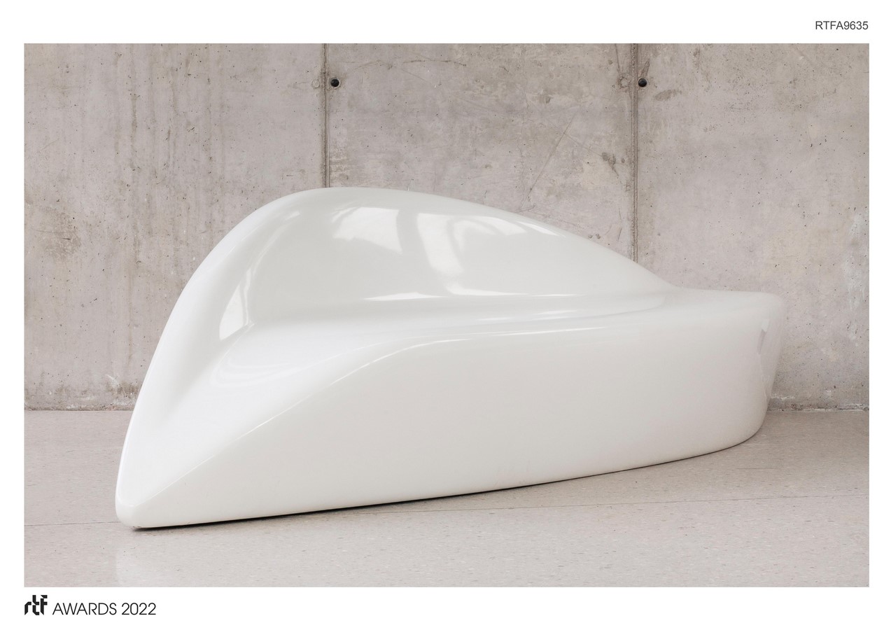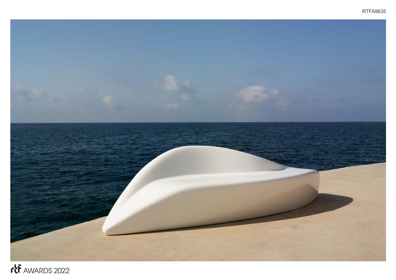 The purity of the lines and the roundness between planes of the MANGA Bench, reinforces the brightness and textures typical of fiberglass and concrete. When the bench is not occupied, its soft undulating shapes make it a sculptural element. Minimalist design, comfortable ergonomic profile and soft ondulations invite contemplation and serenity.