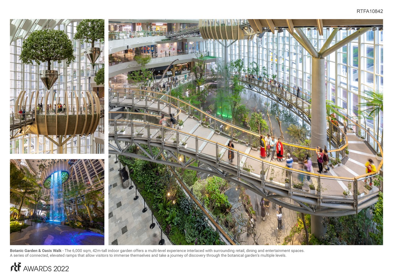 Allowing visitors to feel as though they have walked into a rainforest, the indoor botanical garden features three distinct themes – the Soul Tree, the Aerial Forest and the Riverside Hills. The garden has a 24-metre airborne waterfall and also features a changing and innovative light show designed as a further spectacle to engage visitors.