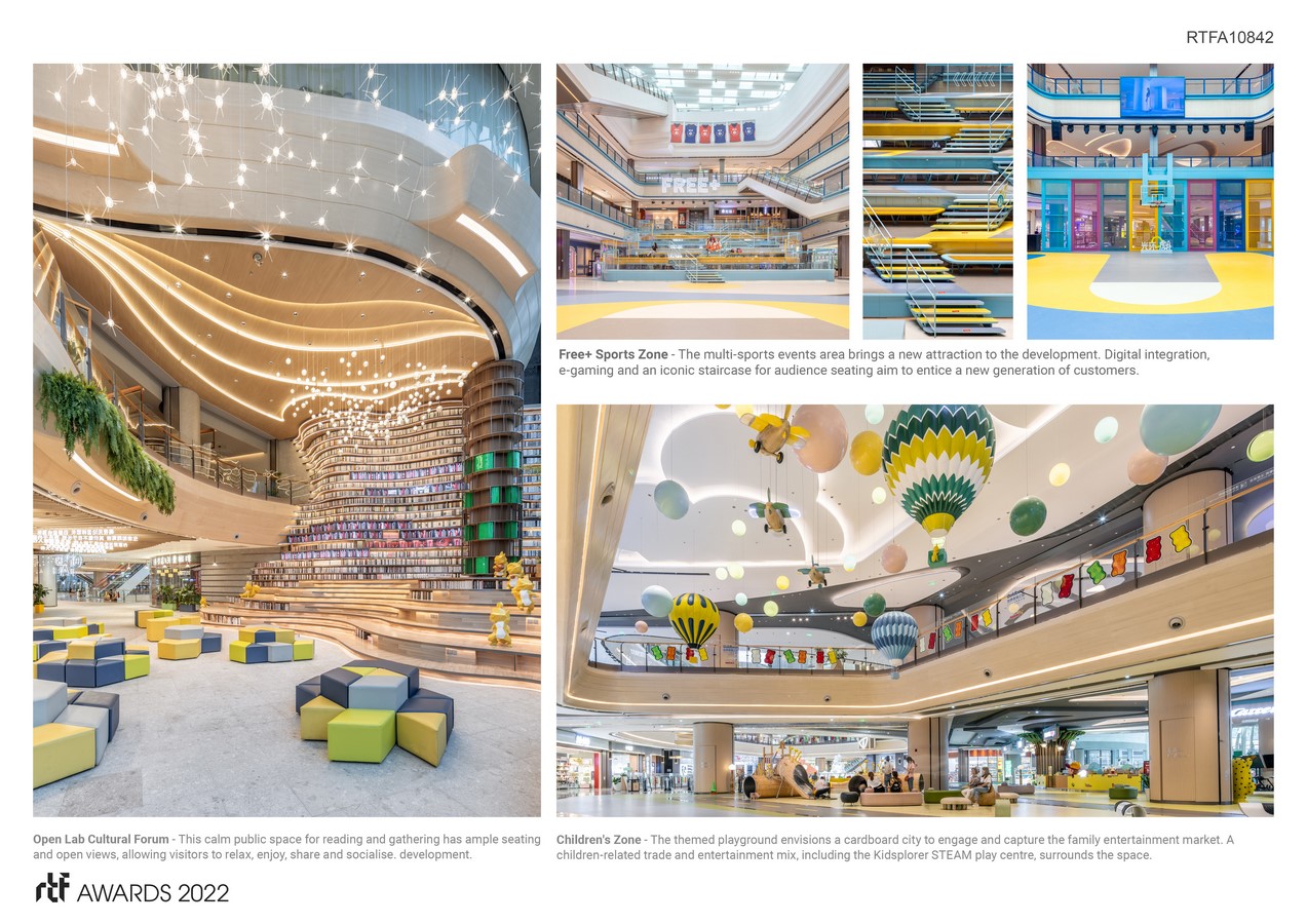 Complementing the indoor gardens, specialty activity hubs such as the ‘Free+’ dynamic sporting facility and ‘Open Lab’, a calm public space for reading and gathering, help meet the diverse and changing consumer preferences.
