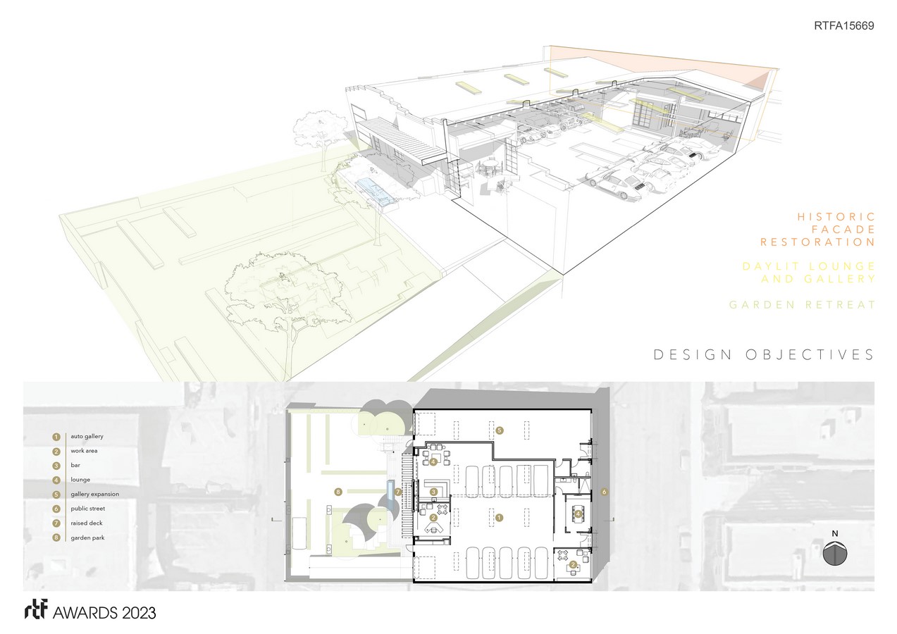 - Create an open and airy, naturally daylit interior lounge and auto gallery by removing an essential demising wall and adding plentiful skylights