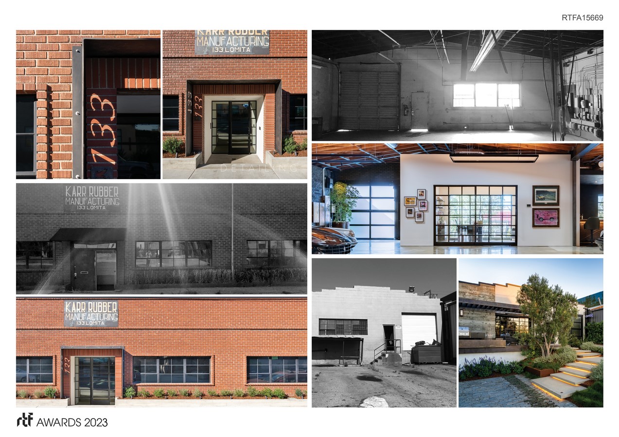 - Rehabilitate the locally historic public exterior by re-pointing the facade, refurbishing the existing steel sash frames and glazing, and paying homage to its industrial past by keeping the Karr Rubber Manufacturing sign. Then we added new, subtle architectural interest and detail, including a rear plate steel blade trellis and front entry canopy – 1 3 3