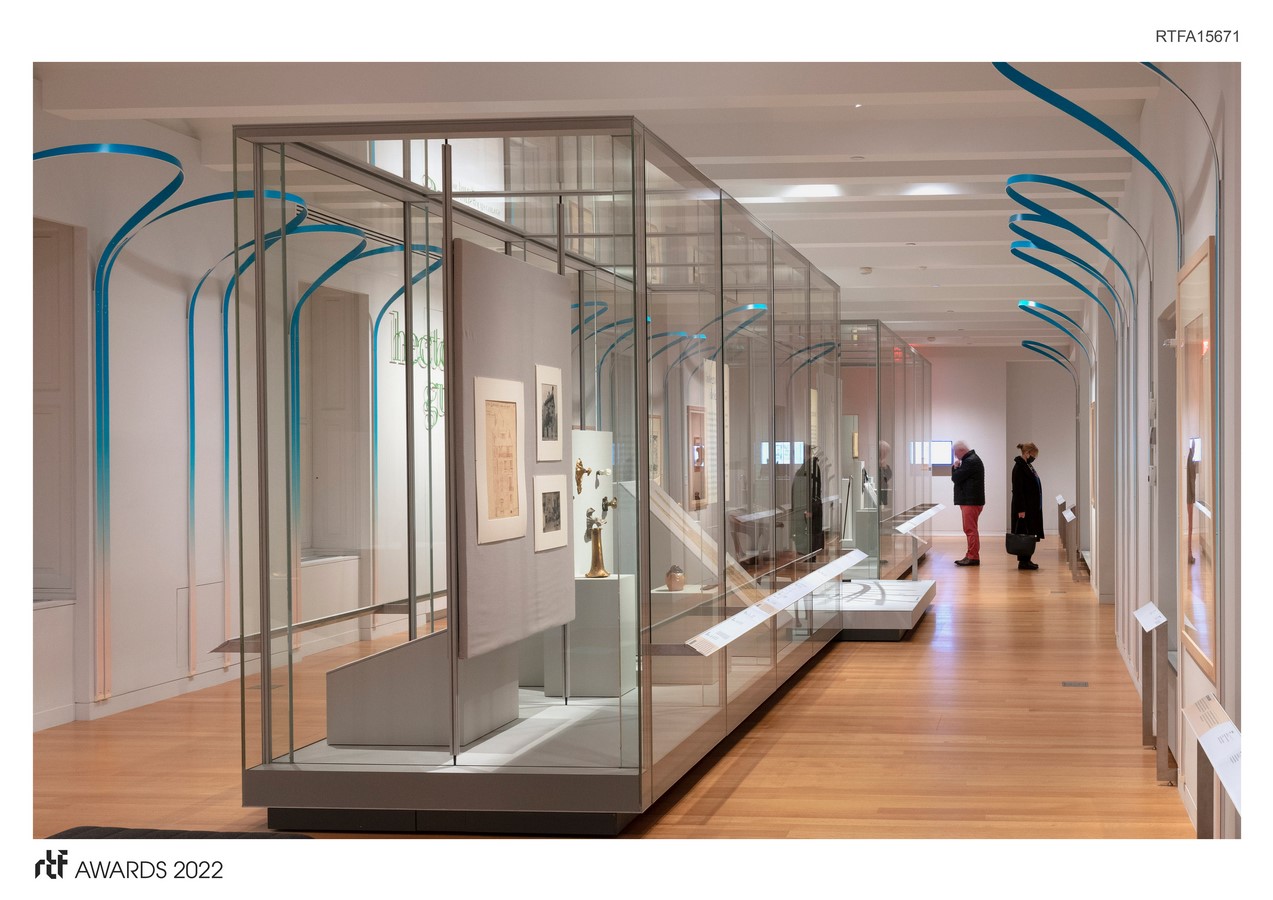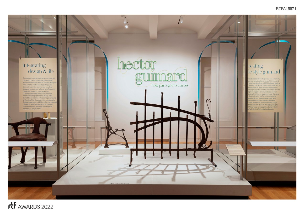 Hector Guimard trained as an architect in the Beaux-Arts tradition. But his aptitude in the worlds of decorative arts, graphics, and related disciplines brought him into the center of Parisian culture and drove forward the Art Nouveau style. Known widely for his Metro entrances, this exhibition brings forward the full range of his artistic vision, elevating the work by giving the visitor a proper understanding of the context and the times in which he worked. Respecting Guimard’s style and working process, the installation is sometimes a backdrop and, at others, in direct conversation with his work. The graphics and armature play with the Art Nouveau tone but are intentionally not derivative of Art Nouveau or Guimard.