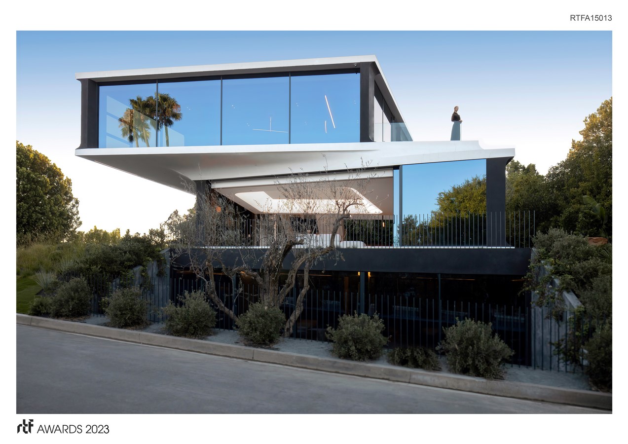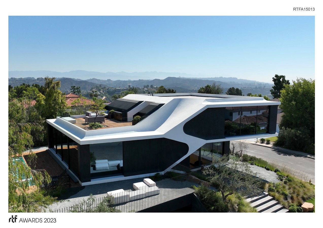 Perched on a hilltop in the Bel Air neighborhood of Los Angeles, overlooking the Pacific Ocean and the Los Angeles basin, the project gently lands a dynamic building on top of a buried podium that replicates the natural topography that was once there before the area was subdivided for development. This hollow post-war neighborhood has been transforming gradually, overtaken by recent developments that rely on size rather than spatial quality. The concept set out to reduce the massing of a rather large project, for it to lodge within the neighborhood proportionally. It proposes an alternative model within the confines of stringent regulations that follows the imagination rather than necessity.