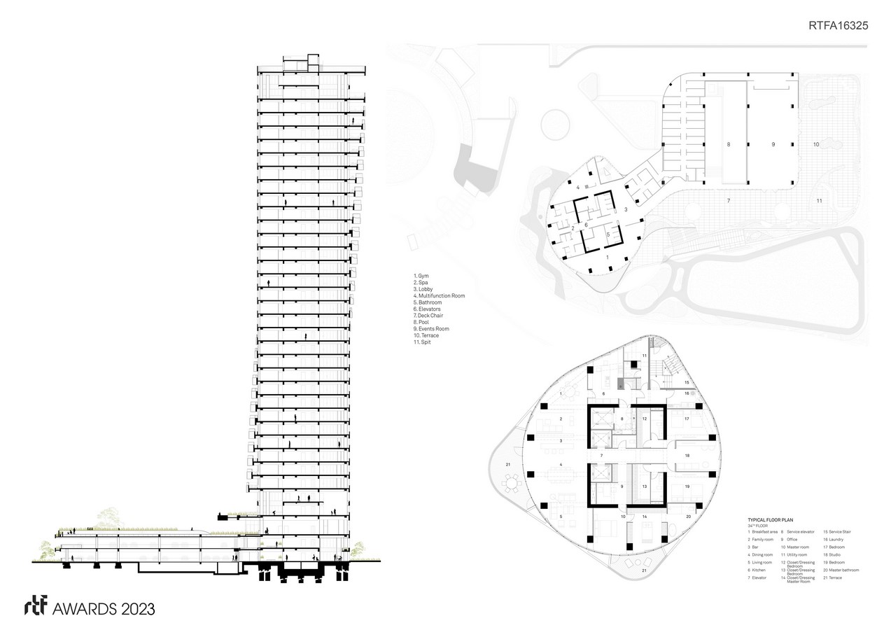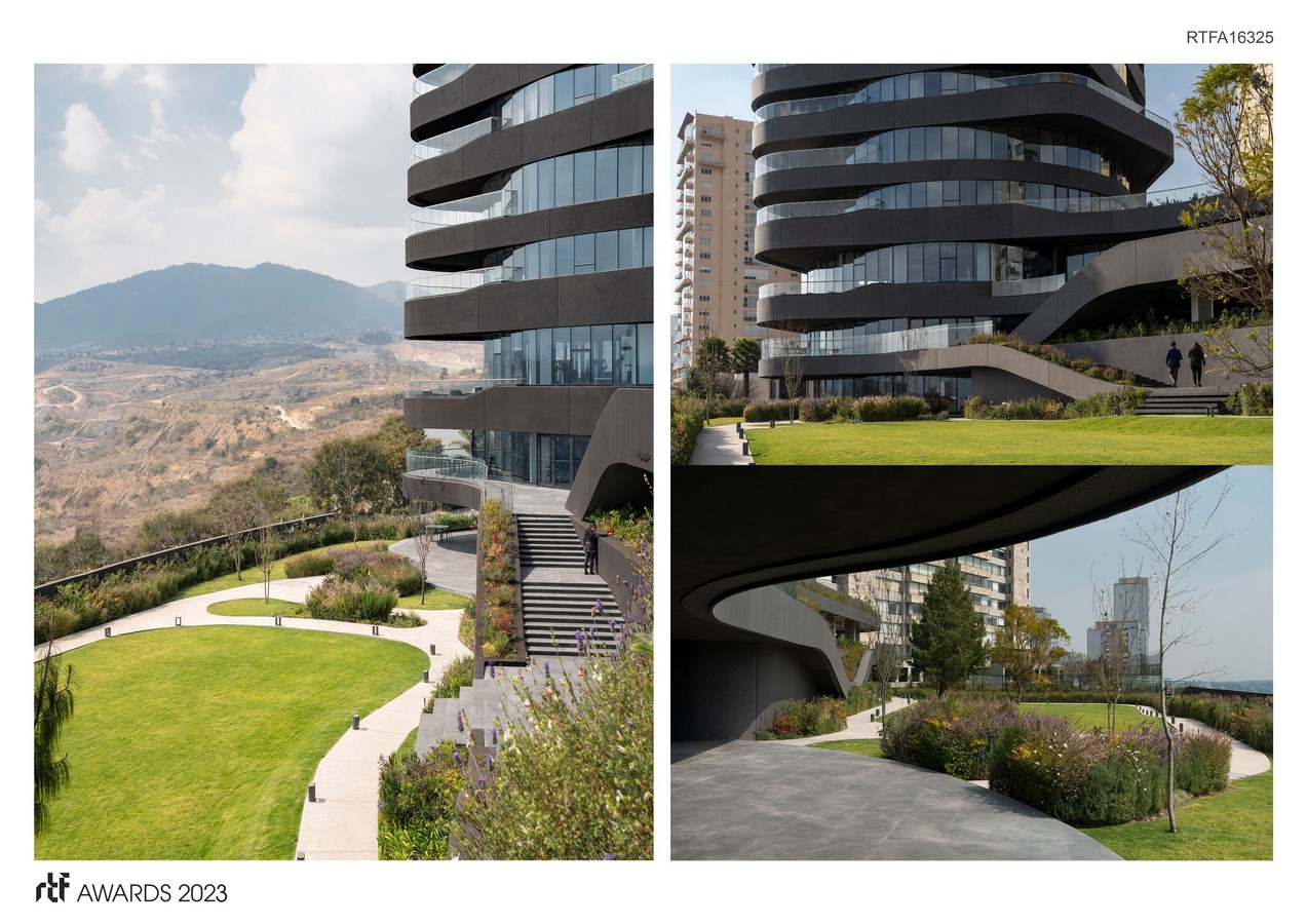 From the layout of its volumetrics, the building seeks to optimize factors such as lighting, views, privacy, and interior space, responding to its context and maximizing the potential of the site and its location. Its characteristic cylindrical shape with a compact footprint is intended to give a significant added value to the housing development schemes that accompany it, since it softens the relationships between these masses, does not affect the views of neighboring buildings and allows variable and different dynamic perspectives. Its shape, in addition to providing great expressiveness to the design, allows the building to have a better behavior in the face of the strong winds present in the place.