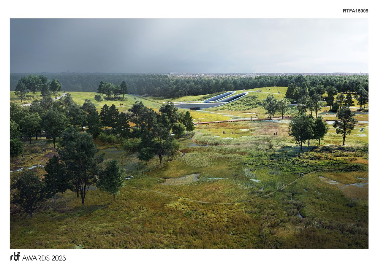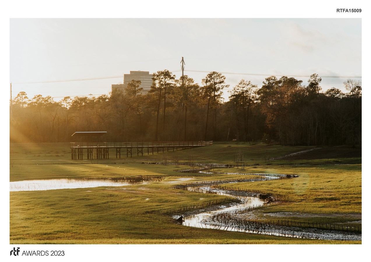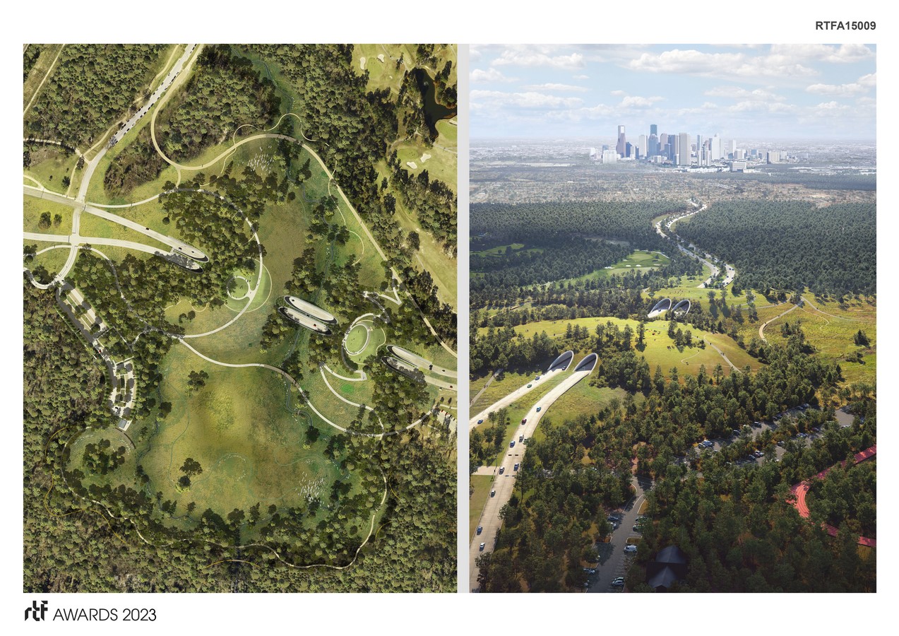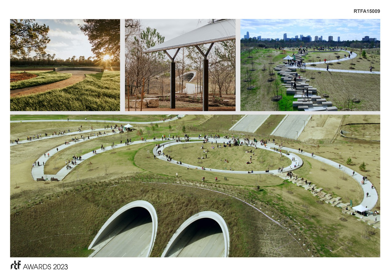 Situated in the heart of Memorial Park, the 100-acre Land Bridge & Prairie creates a new high-performing landscape and public greenspace within the rich cultural and ecological Gulf Coast context enhancing the urban wilderness character of the park while providing expanded opportunities for active and passive recreation. Families, students, tourists, and nature enthusiasts are able to learn more about the native ecologies, and carefully planned trails accommodate multiple levels of recreational pursuit, from winding paths for leisurely strolls to hills and scrambles for rigorous interval work. New vantage points of the downtown and uptown Houston skylines on top of the Land Bridge provide an iconic gathering place for sunrise meditation, evening stargazing, and special events.