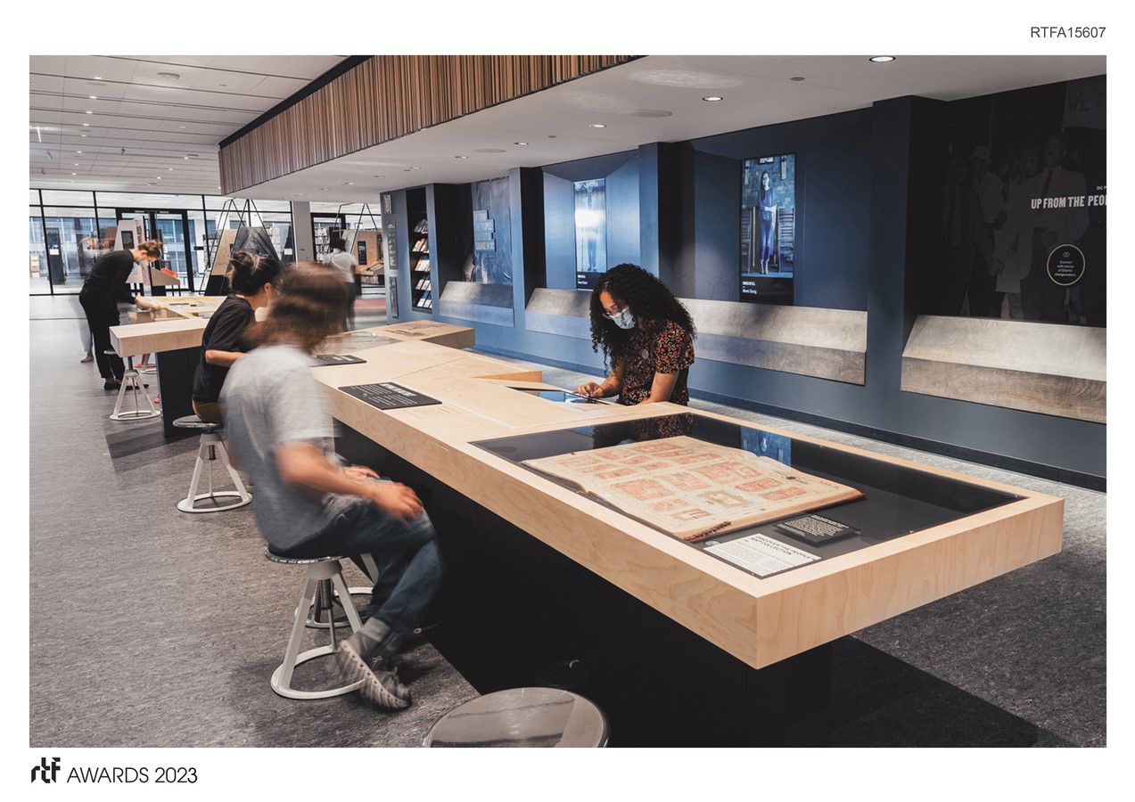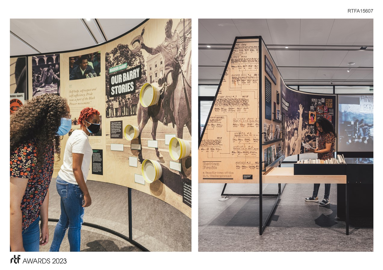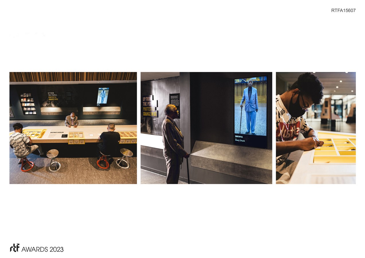 “Up From the People: Protest and Change in D.C.” is a community gallery and Welcome Center at MLK Jr. Memorial Library in Washington, D.C. As part of an extensive renovation of their Mies Van der Rohe building, the Library sees the permanent exhibition space on the 4th floor as a central element of creating a more welcoming place for residents. The 8,000 SF space encompasses displays, films, music videos, public feedback opportunities, historical narrative, and engagement space.