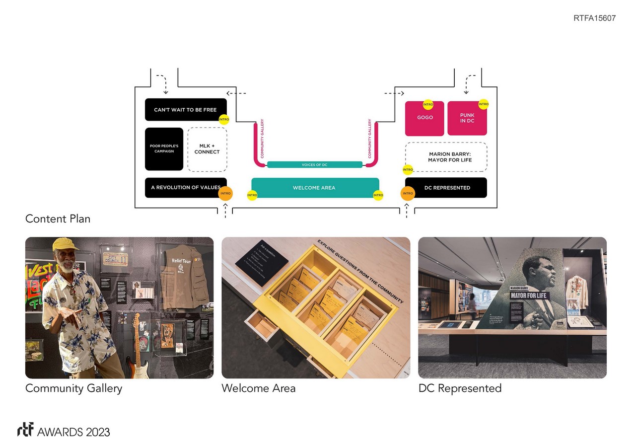 The design includes embedded media and analog interactives that welcome the public’s participation, including interactions with two local D.C. music movements, Go-Go and Punk.