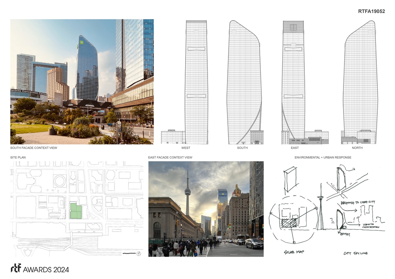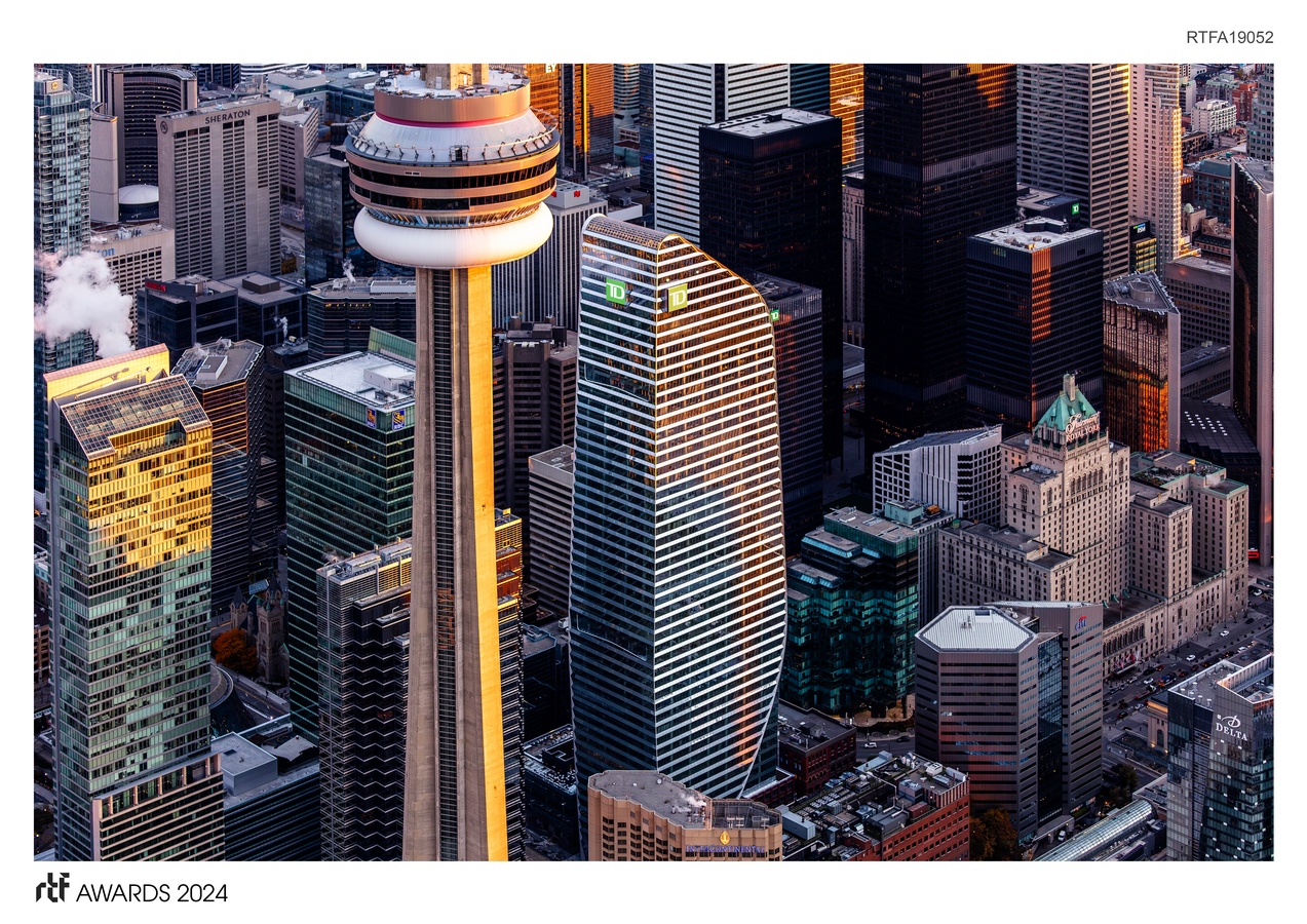 160 Front Street, now TD Terrace Tower for the main tenant TD Canada Trust, alters the Toronto skyline with a shape that was sculpted in response to extensive environmental site analysis.