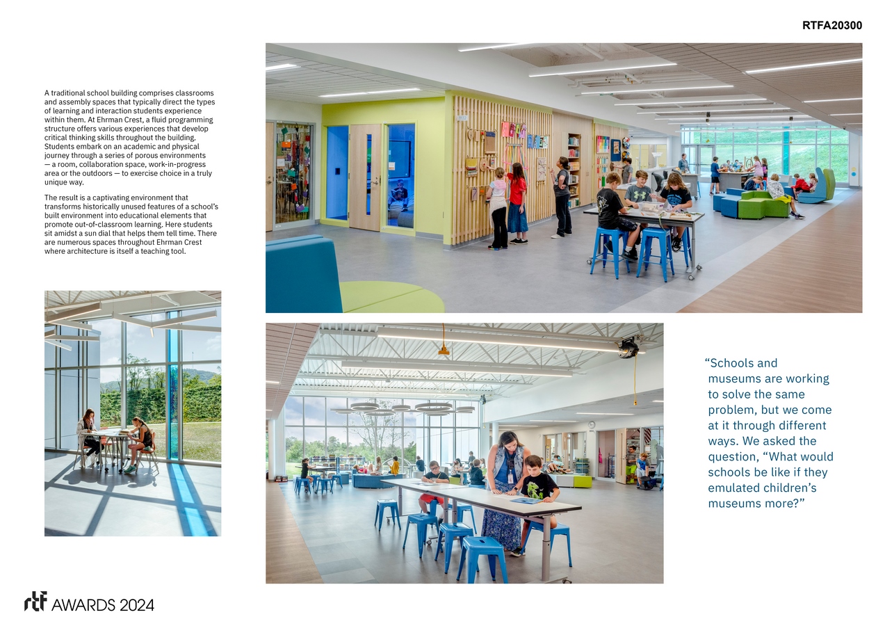 Ehrman Crest Elementary and Middle School is worthy of a Rethinking the Future award as it could truly forever change what’s possible in elementary school design.