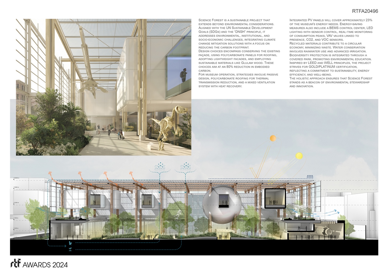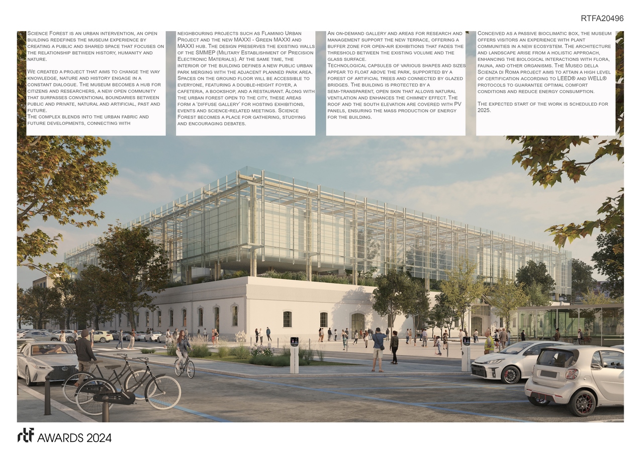 Conceived as a passive bioclimatic box, the museum offers visitors an experience with plant communities in a new ecosystem. The architecture and landscape arise from a holistic approach, enhancing the biological interactions with flora, fauna, and other organisms. The Museo della Scienza di Roma project aims to attain a high level of certification according to LEED® and WELL® protocols to guarantee optimal comfort conditions and reduce energy consumption.