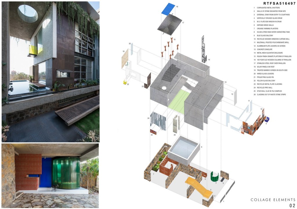 Living in Mumbai, India it is impossible to ignore the informal settlements in the city, and if looked at closely there are many lessons to be learnt in frugality, adaptability, multi-tasking, resourcefulness and ingenuity. A visual language emerges that is of the found object, ad-hoc, eclectic, patched and collaged. An attempt has been made here to apply some of these lessons without romanticizing or fetishizing them. The project looks at the idea of recycling and collage in several ways, from the very physical – like materials, energy, etc. to the intangible – like history, space and memories.