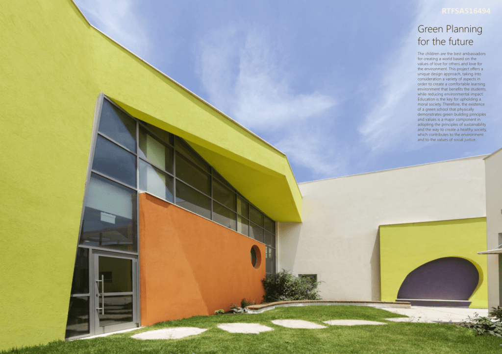 This project offers a unique design approach, taking into consideration a variety of aspects in order to create a comfortable learning environment that benefits the students, while reducing environmental impact. Education is the key for upholding a moral society. Therefore, the existence of a green school that physically demonstrates green building principles and values is a major component in adopting the principles of sustainability.