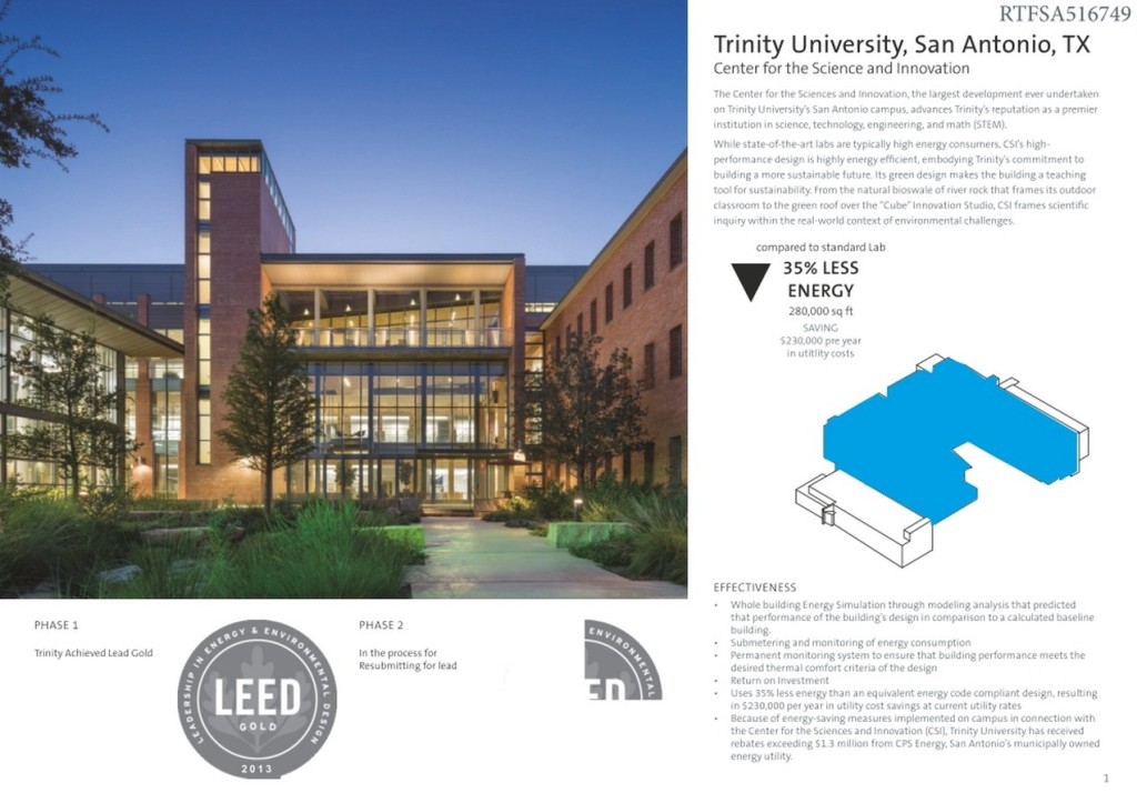 The Center of the sciences and innovation the development ever undertakken on trinity university’s san antonio campus advances trinity’s reputation as a premier institution in science technology engineering and math(STEM).