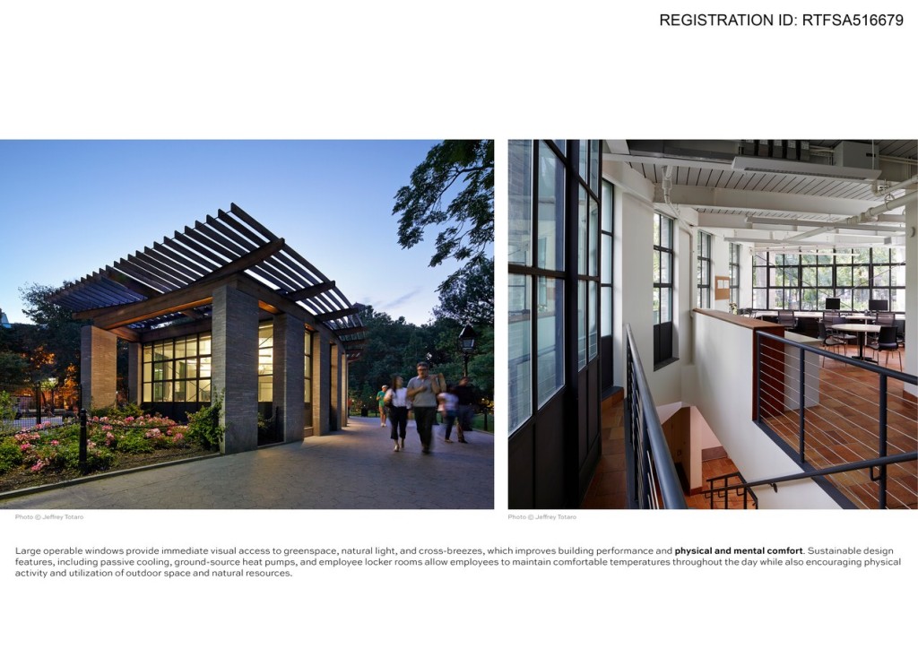 Other contributors to low environmental impact, as well as increased workplace comfort, include ample natural light and park views. In addition, low or zero-VOC paints, adhesives, coatings, sealers, and sealants were used throughout the project. The project has achieved the highest industry honor of LEED Platinum certification.