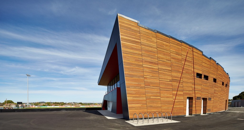 The grandstand seating is made of recycled plastic while the timber is used from shading to external glazing. The grand stand was manufactured using off the shelf pre-built concrete construction planks. The project achieved an exemplar rating using the Sustainable Tools for Environmental Performance Strategy STEPS) scorecard.