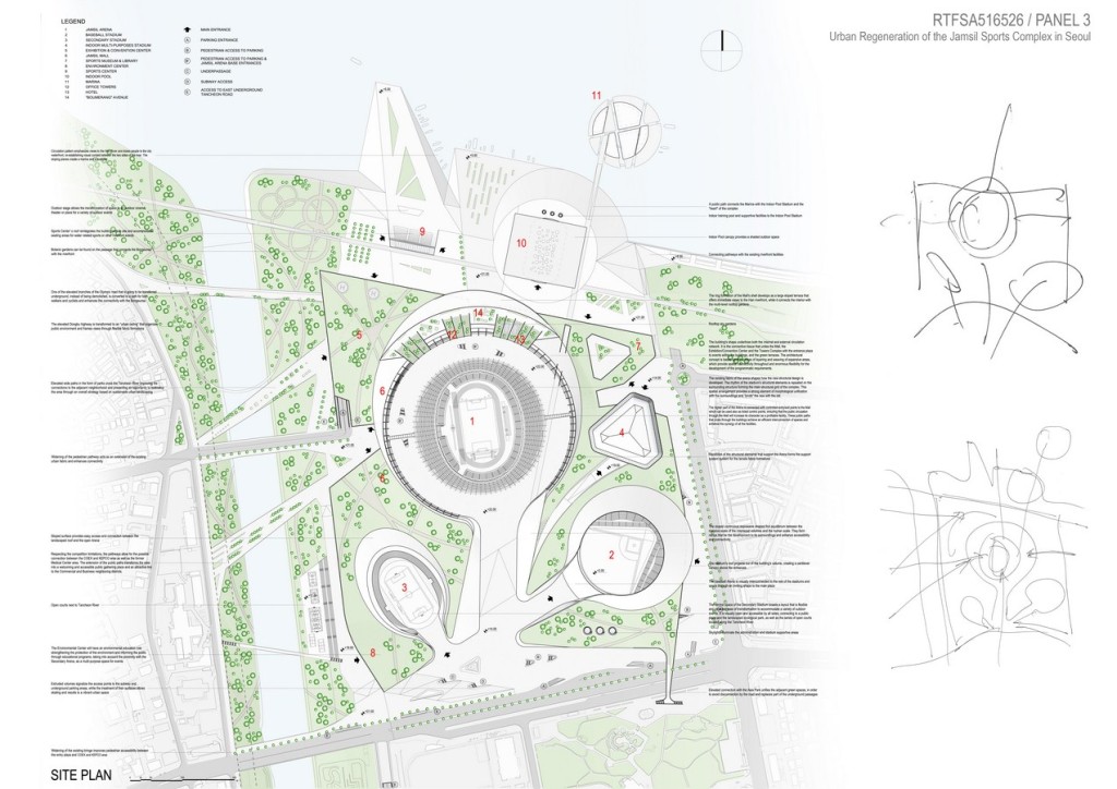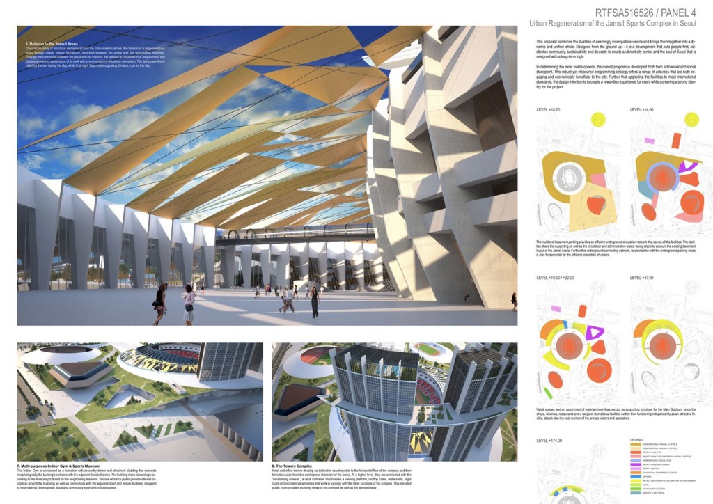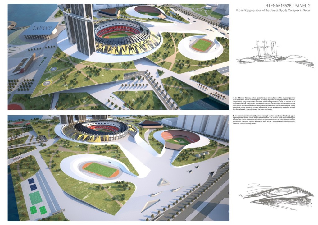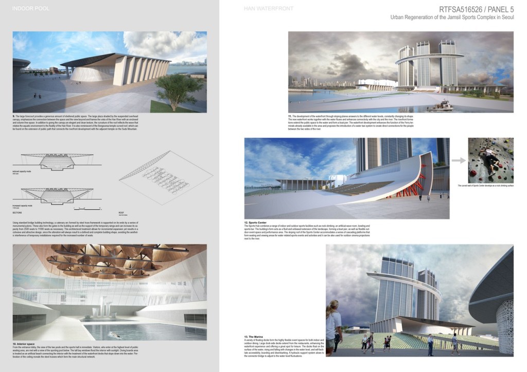 The proposal reconnects Jamsil area to the daily life of the city, tying into the city’s transportation systems and introducing new recreation systems such as bike paths, jogging trails as well as the overlay of transport options like a potential high-speed ferry which will connect parts of the city disconnected by the Han river. Rather than a singular and heavily programmed destination, this proposal is a platform for a multitude of different and more flexible programs and experiences for both tourists and the local community.