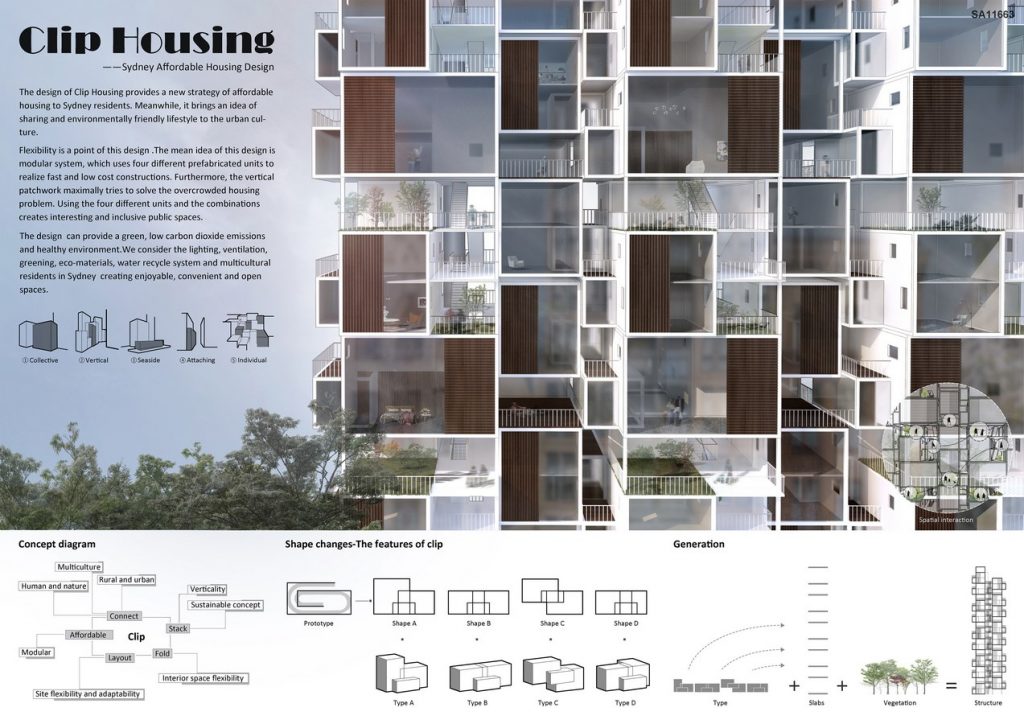 The design of Clip Housing provides a new strategy of affordable housing to Sydney residents. Meanwhile, it brings an idea of sharing and environmentally friendly lifestyle to the urban culture.