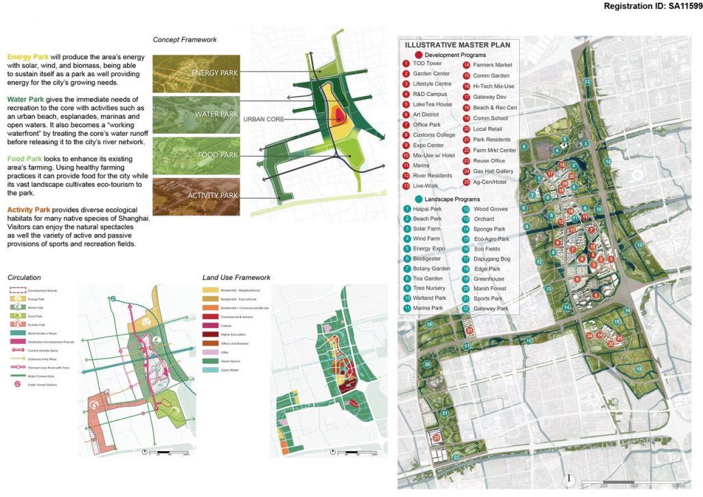 Located in the heart of the Pudong District, the project’s site conditions are populated with electrical pylons, water systems that are polluted and stagnant, a diminishing and disjointed agricultural harvesting system and lack of adequate recreational spaces, the design looks to improve and enhance the site with prominent resources.