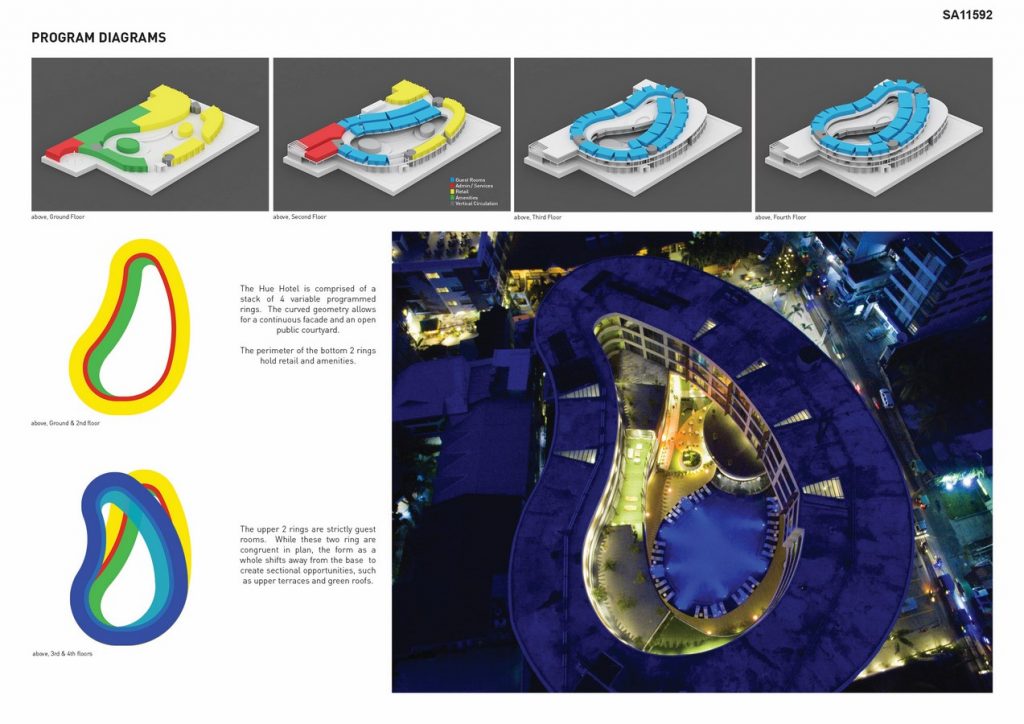 Our ambition was to rethink the concept of a boutique hotel and tropical architecture for the 21st century. Embracing the lush climate, but drawing attention inward, the bulbous design comprises a stack of interlocking rings producing a continual, rhythmic cycle of entertainment and relaxation through terraces, roof gardens, and hotel amenities.
