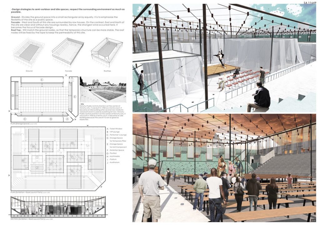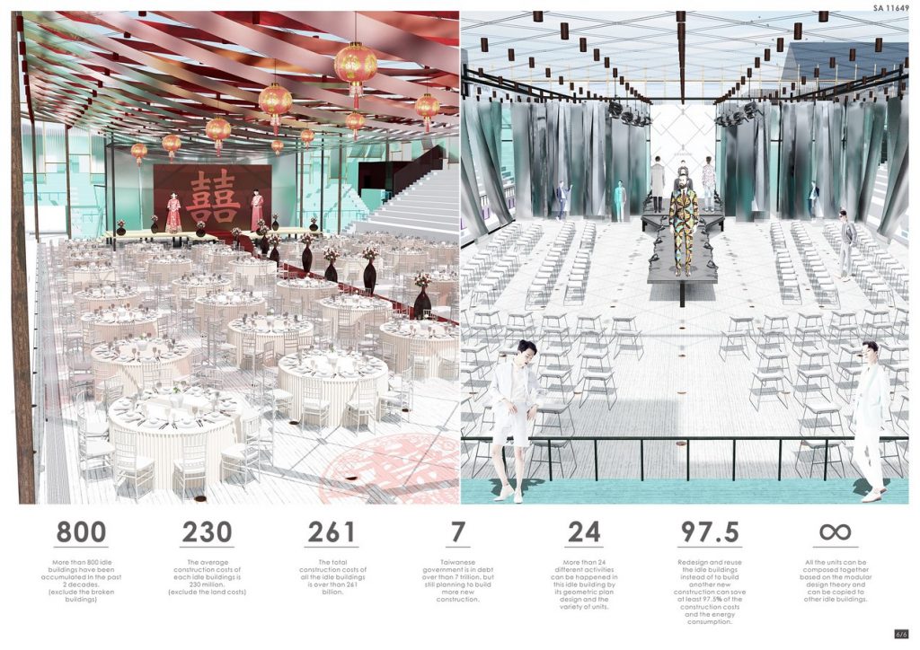 Therefore, how to redesign and recreate the idle buildings and turn them into the ideal public spaces is an important issue to think about. In this case, the concept of the construction is to compose the variety of different function by the most simple components. Try to maximize the flexibility of space reuse on the premise of minimizing the construction costs and resource consumption.